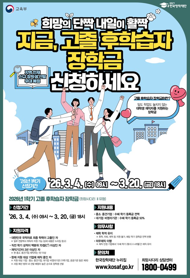 ■ 문의처 : 1800-0499 (한국장학재단 콜센터)